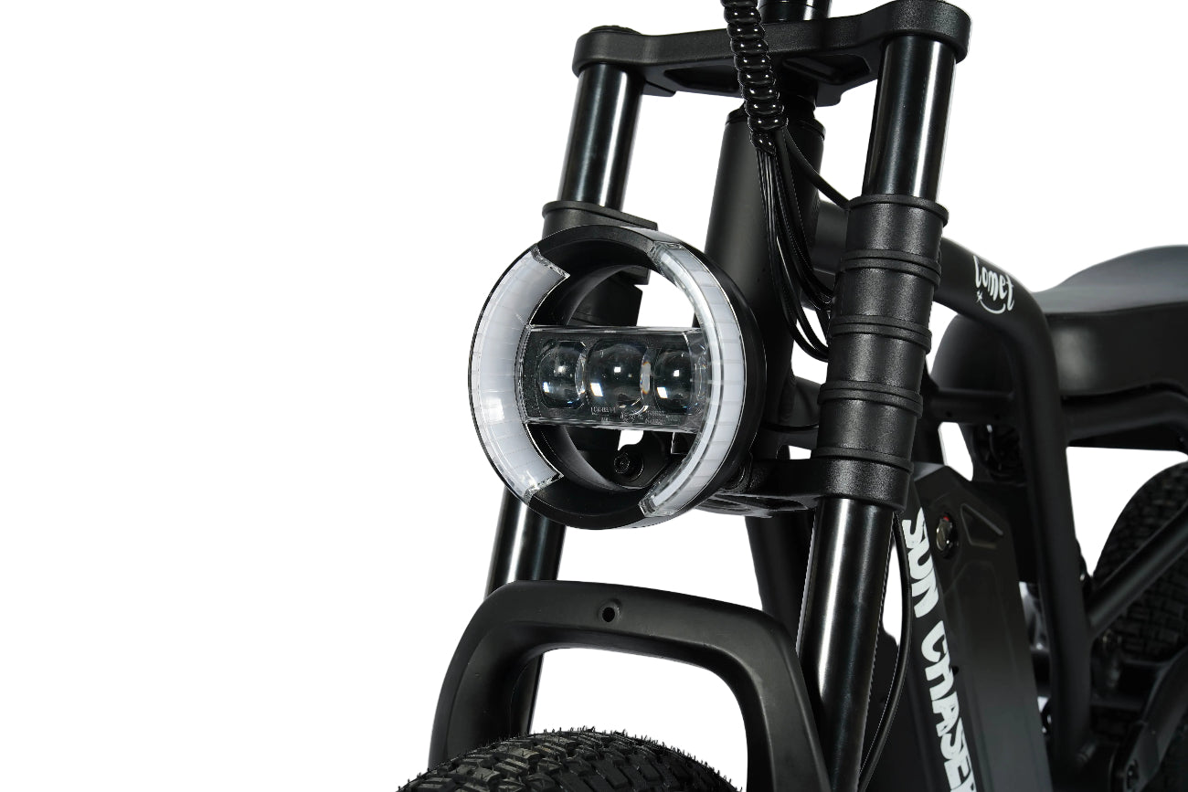 Your new Comet ebike is backed by Sun Chaser’s 12-month warranty covering the frame, motor, battery, controller, and electrical components against manufacturing defects.