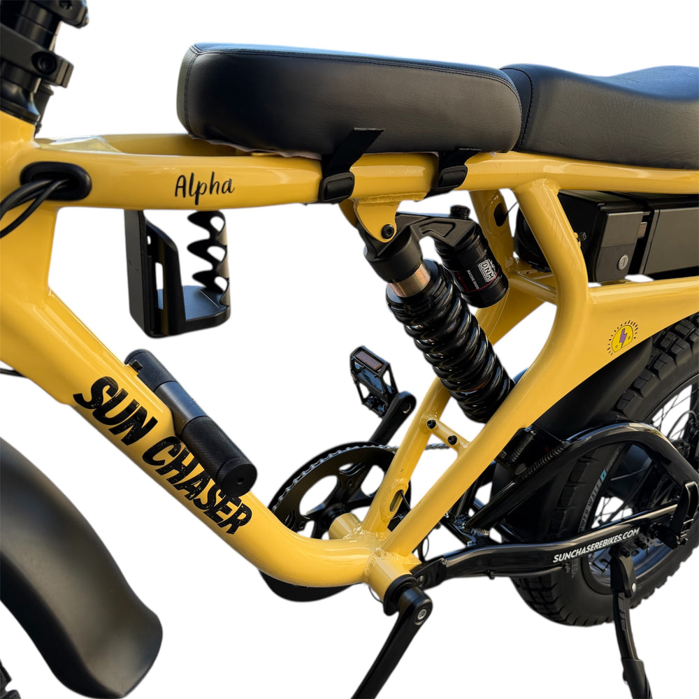 This front child seat is designed for the Alpha model, and may also fit other e-bikes with similar configurations.