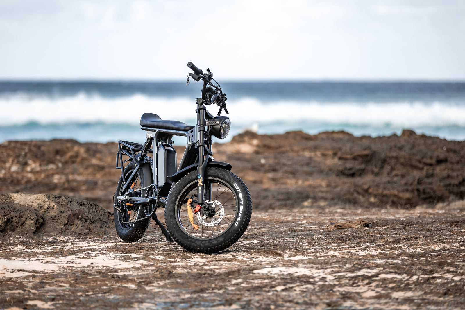 With fat tires and rugged suspension, it glides over sand, gravel, and pavement with ease — built to go wherever your day takes you.